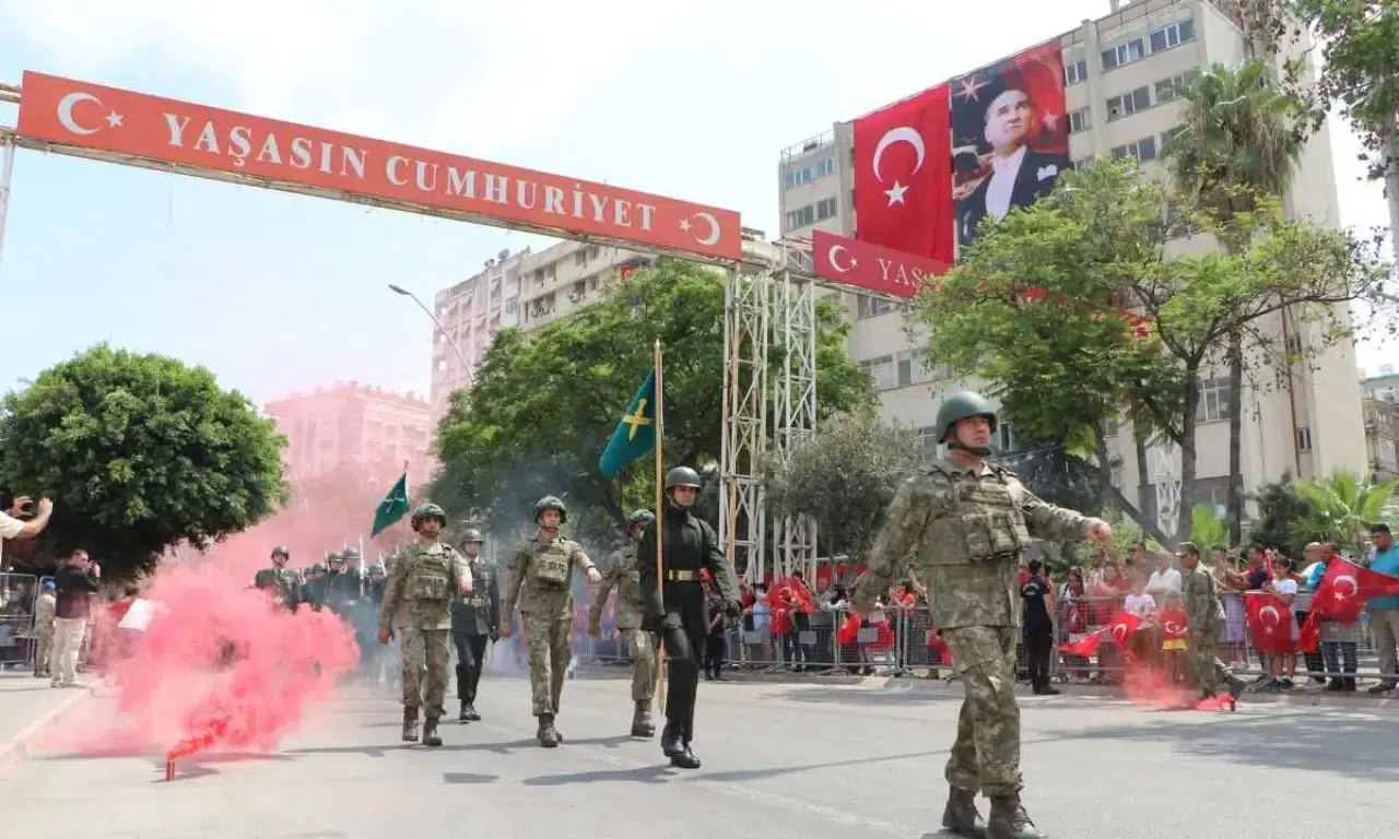 Adana Valisi Yavuz Selim Köşger, 6’ncı Kolordu Komutanı Tümgeneral Mehmet Özeren ve Büyükşehir Belediye Başkan Vekili Güngör Geçer, Uğur Mumcu Meydanı’nda halkı selamladı. Tören sırasında şehitler için 1 dakikalık saygı duruşu gerçekleştirildi, ardından İstiklal Marşı okundu.