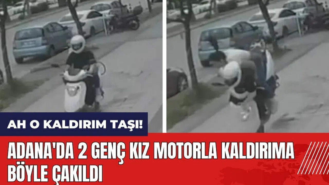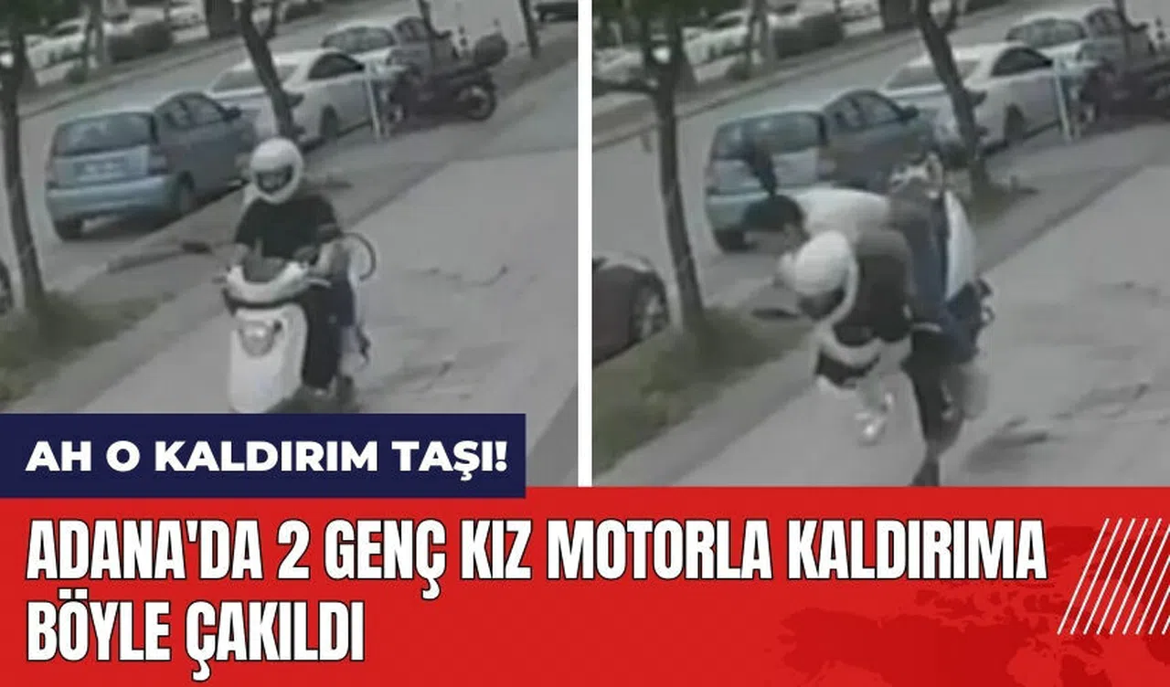 Kaldırımda motosiklet ile ilerleyen iki genç kız, kaldırım taşının kalkması sonucu motosikletin takla atmasıyla yere çakıldı.