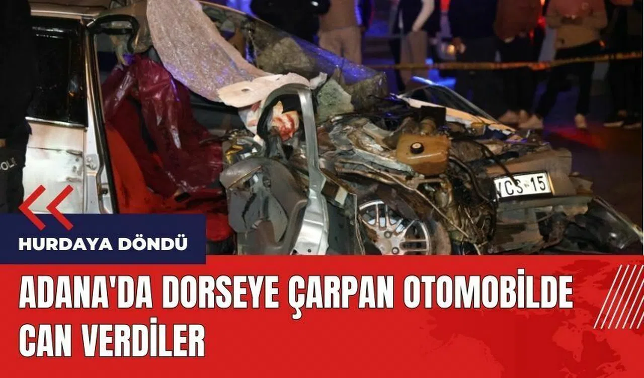 Adana'da meydana gelen trafik kazasında bir otomobil kontrolden çıkarak park halindeki bir tırın dorsesine çarptı, sonucunda araç hurdaya döndü. Kazada bulunan iki kişi hayatını kaybetti.