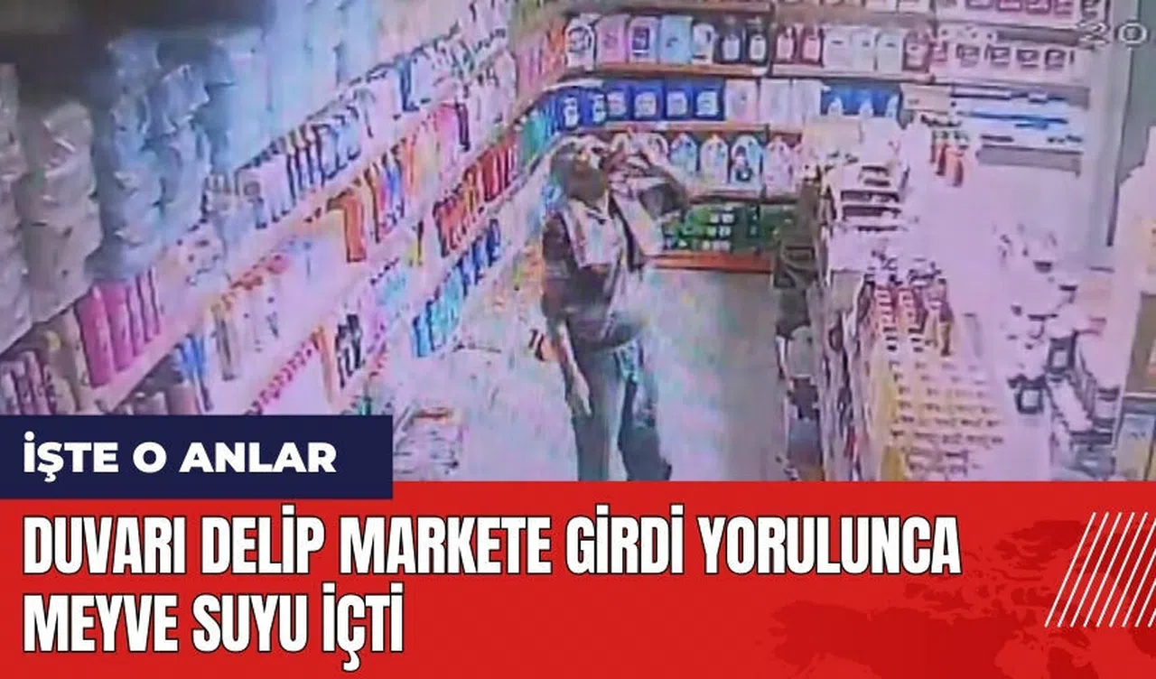 Duvarı balyozla delerek içeri giren şüpheli, marketten 200 paket sigara, gıda ürünleri ve nakit para olmak üzere toplamda 60 bin TL değerinde ürün ve para çaldı. Rahat tavrıları dikkat çeken şüpheli, dolaptan meyve suyu da alıp içti. Hırsızlık anı güvenlik kameralarına anbean yansıdı.