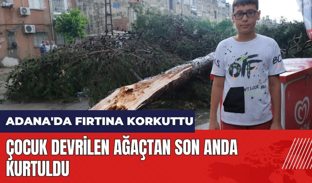 Adana'nın Çukurova ilçesi Belediyeevleri Mahallesi'nde gerçekleşen olayda, 13 yaşındaki Çınar Karskaya, cips almak üzere bakkala gitti. Aniden bastıran yağmurun ardından çıkan fırtınada bakkalın önünde bulunan cips standı hareket etmeye başladı. Küçük Çınar, standı kontrol altına almak isterken, bakkalın yanında bulunan ağaç ortadan ikiye ayrılarak çocuğun birkaç metre ötesine düştü.