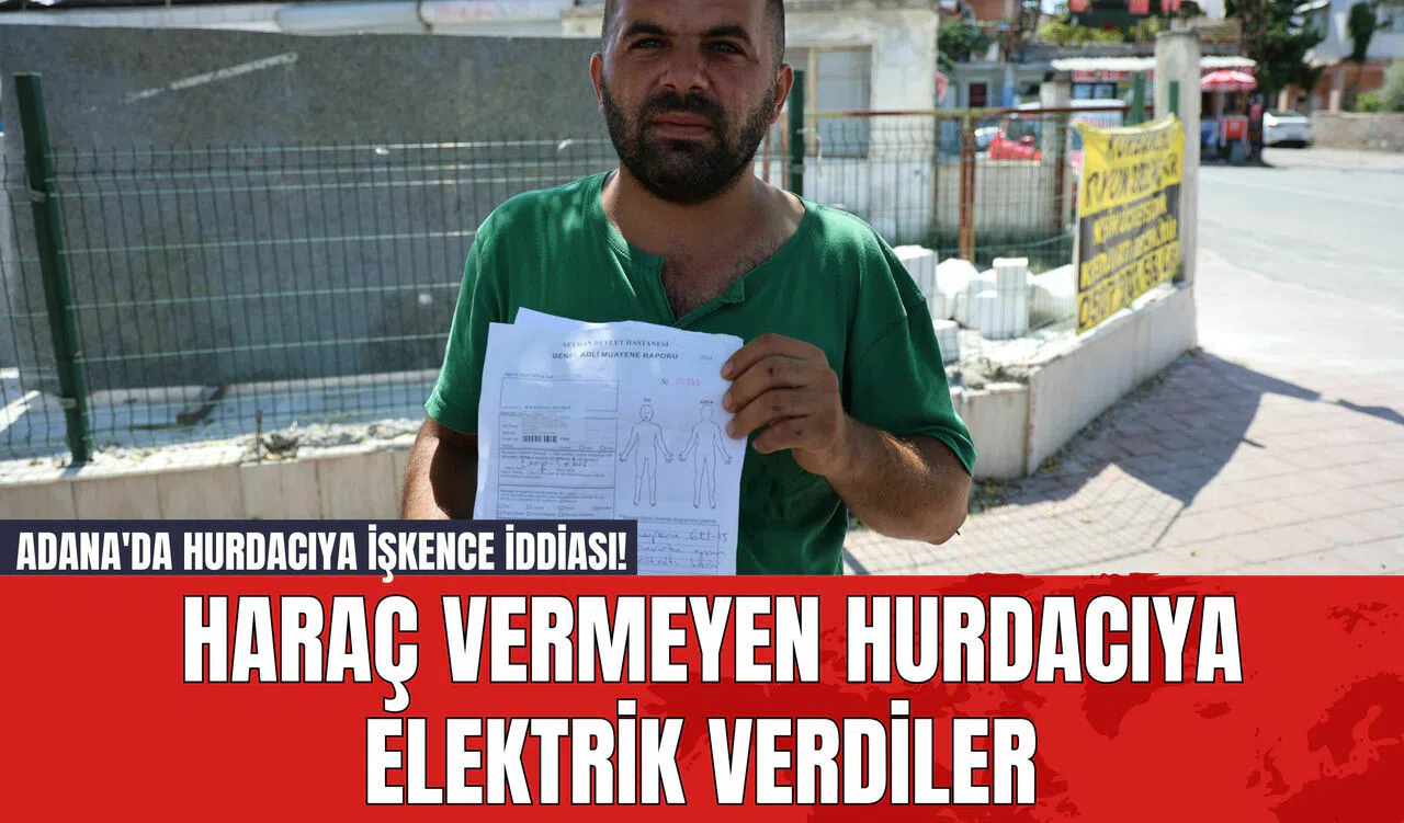 Adana'da hurdacılık yapan bir kişi, haraç istediği öne sürülen kişiler tarafından işkenceye maruz kaldı. Dayak yiyen ve vücuduna elektrik verilen hurdacı, darp raporu alarak suçlular hakkında şikayetçi oldu.