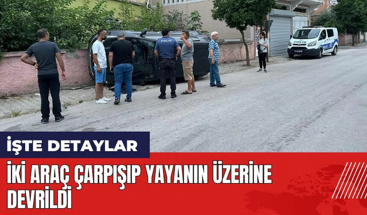 Adana'da iki araç çarpışıp yayanın üzerine devrildi