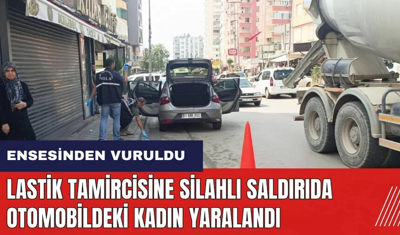Adana'da bir lastik tamirhanesine düzenlenen silahlı saldırıda, otomobiliyle seyir halindeki kadın ensesinden vuruldu.