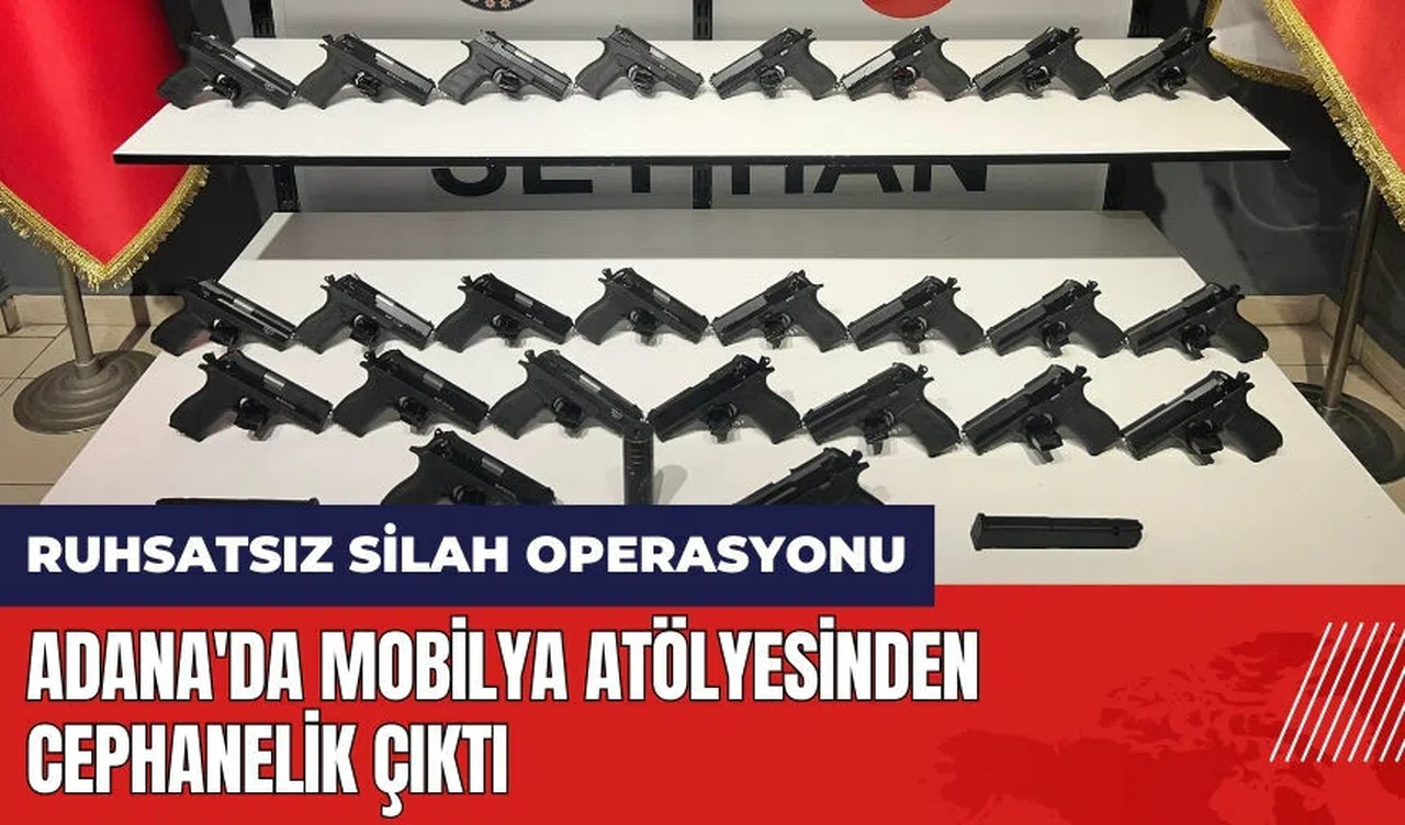 Operasyon sırasında, mobilya atölyesinin ardiyesindeki kutuların içinde 26 ruhsatsız tabanca, 3'ü uzatmalı 29 şarjör ve susturucu ele geçirildi. Ele geçirilen bu silahlar, detaylı incelemeler yapılmak üzere Adana Kriminal Polis Laboratuvarı'na gönderildi.