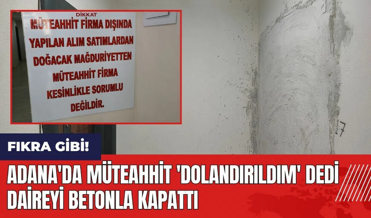 Adana'da müteahhit Abdullah Kapan (46), yaptığı ve sattığı bir dairenin kime ait olduğu konusunda yaşanan karmaşanın ardından binasının girişine 'Firma dışında yapılan alım satımlardan doğacak mağduriyetten müteahhit firma kesinlikle sorumlu değildir' yazısını astı. Kapan, daireyi satın alan kişinin kendisine karşılıksız çek verdiğini ve bu yüzden dolandırıldığını öne sürdü. Kapan, bu kişiyi mahkemeye verince dairenin başkasına satıldığını iddia etti.