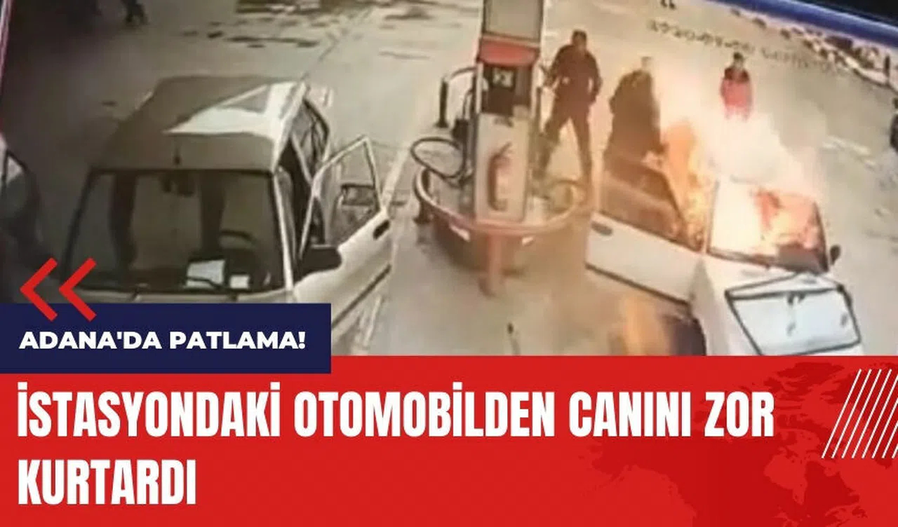 Adana'da patlama! İstasyondaki otomobilden canını zor kurtardı