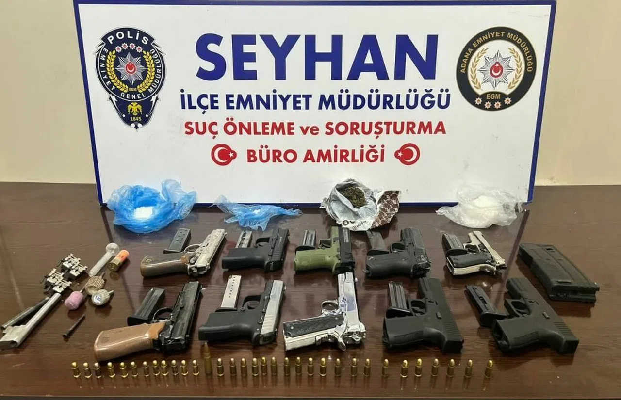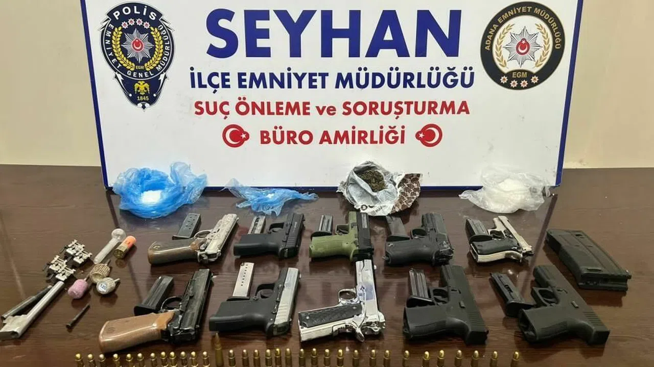 Seyhan İlçe Emniyet Müdürlüğü Suç Önleme ve Soruşturma Büro Amirliği ekiplerinin gerçekleştirdiği operasyonda, Ş.Y., S.K. ve Ü.Y. isimli şüphelilerin evleri hedef alındı. Operasyon kapsamında yapılan aramalarda, toplamda 10 ruhsatsız tabanca, 248 gram metamfetamin ve 31.84 gram esrar ele geçirildi.