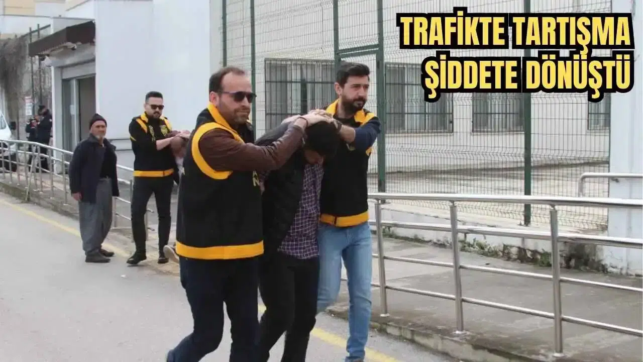 Adana’da trafikte tartıştıkları otomobil sürücüsünün önünü kesip bıçakla saldıran tır şoförü baba ve oğlu tutuklandı. Olay anı araç kamerasına yansırken, şüphelilere toplam 363 bin TL para cezası uygulandı.