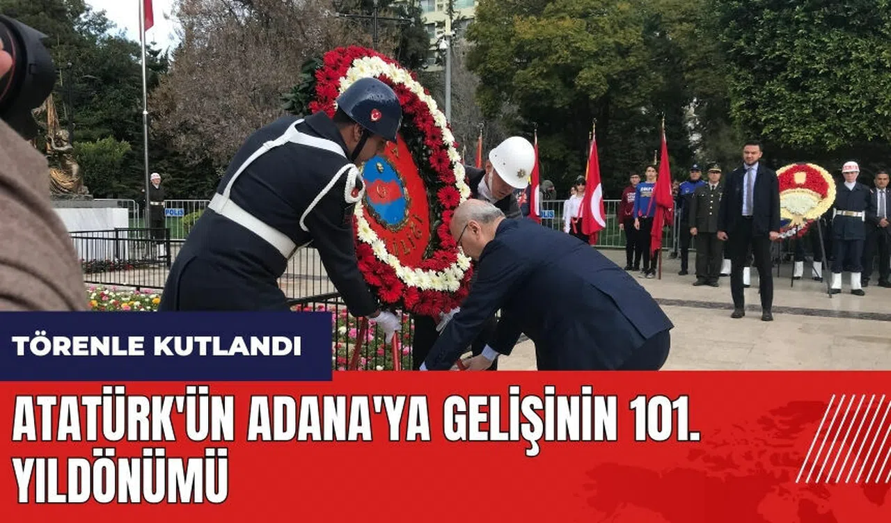 Adana'ya gelişinin 101. yıldönümünde düzenlenen törende, Vali Yavuz Selim Köşger, 6. Kolordu Komutanı ve Garnizon Komutanı Tümgeneral Mehmet Özeren ve Büyükşehir Belediye Başkanı Zeydan Karalar, Atatürk Anıtı'na çelenk koydu.