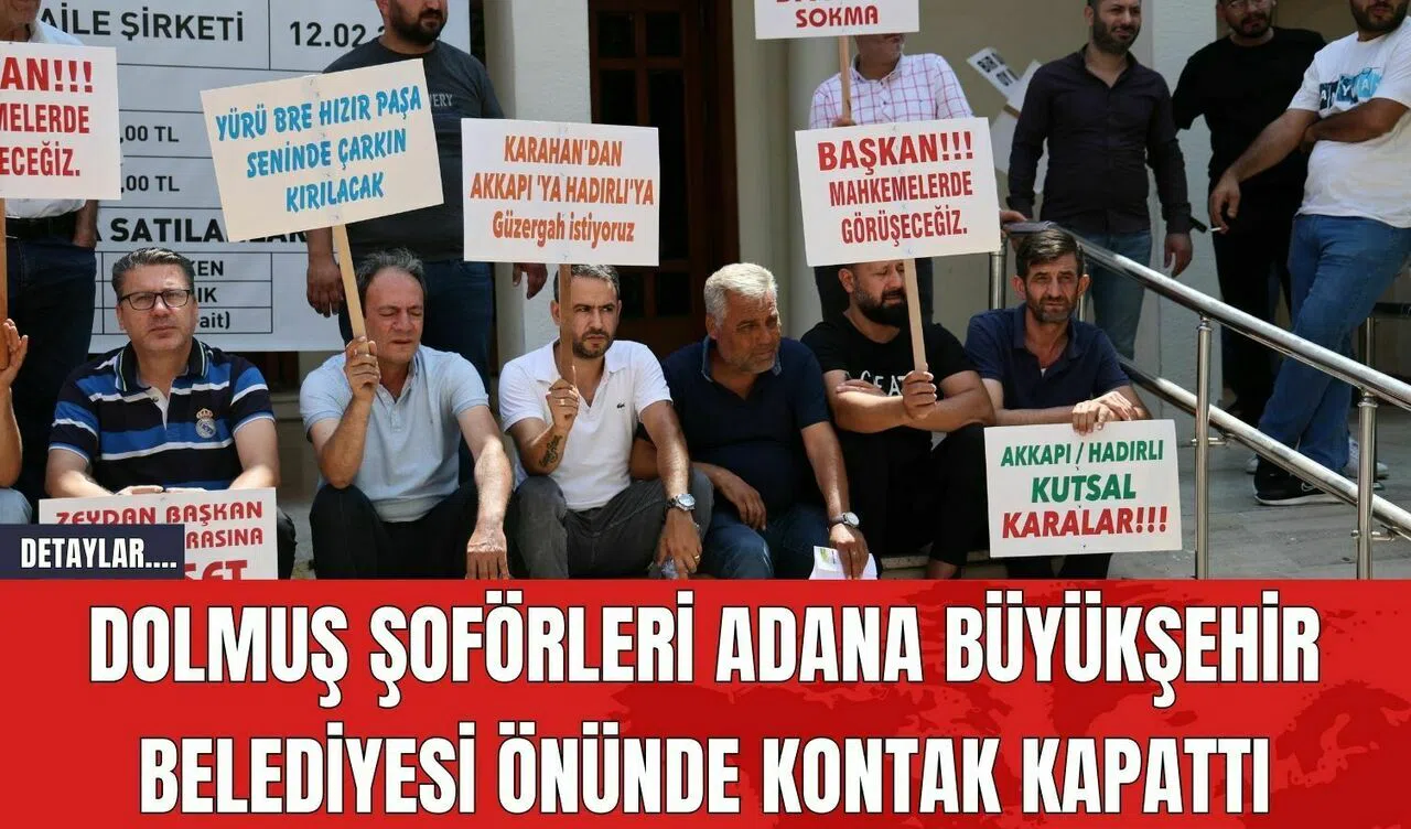 Adana'da İtimat Kooperatifine bağlı dolmuş şoförleri, başka minibüslerin hatlarına girmesini protesto etmek için Adana Büyükşehir Belediyesi önünde eylem yaptı. Şoförler, belediyenin aldığı kararı geri çekmesini talep etti.