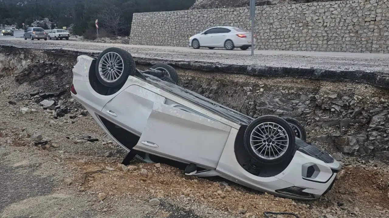 Antalya’yı Konya’ya bağlayan önemli geçiş noktalarından Akseki-Seydişehir karayolunda akşam saatlerinde korkutan bir kaza meydana geldi. Sürücüsünün direksiyon hakimiyetini kaybettiği otomobil, yoldan çıkarak şarampole düştü.
