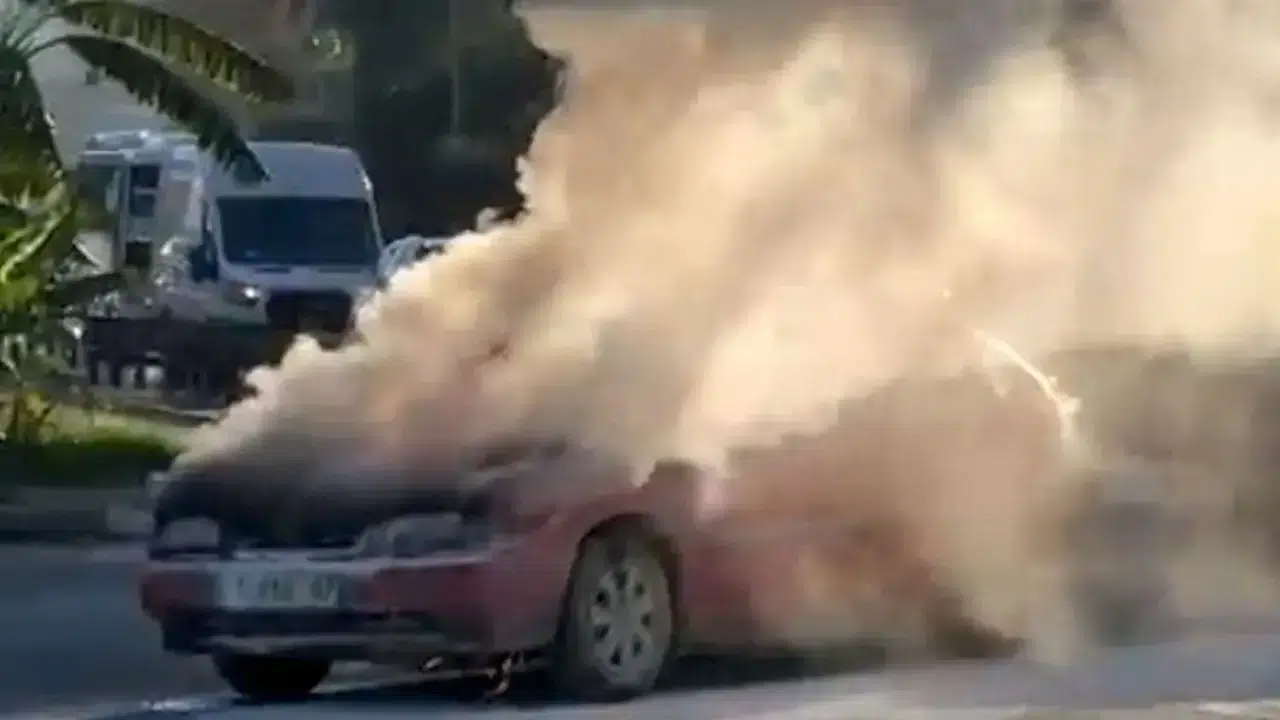 Antalya'nın Alanya ilçesinde seyir halindeki otomobilde alevler yükseldi. D-400 karayollarında panik yaşanırken araç kullanılamaz hale geldi.