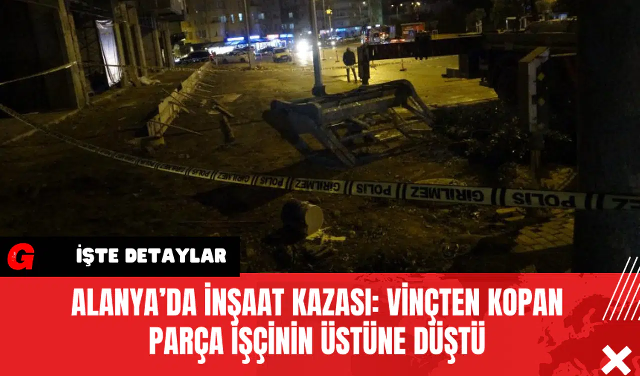 Antalya’nın Alanya ilçesinde bir inşaat alanında meydana gelen kaza, bir işçinin yaralanmasına neden oldu. İnşaat alanındaki vinçten kopan parça, çalışan A.A. isimli işçinin üzerine düştü.