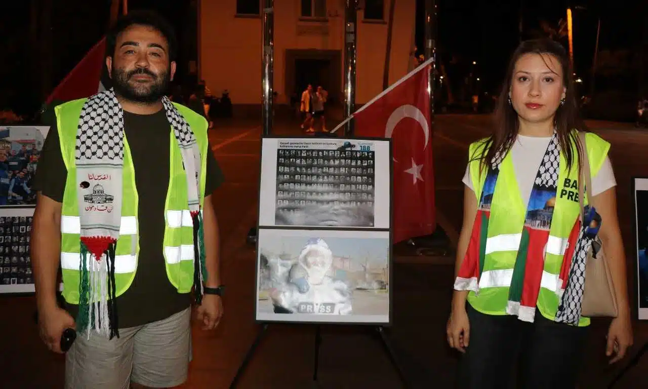 İsrail'in Gazze'ye yönelik saldırılarında 238 gazetecinin öld*rülmesi Antalya'nın Alanya ilçesinde protesto edildi.