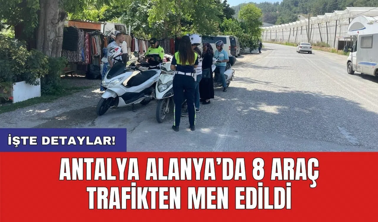 Antalya’nın Alanya ilçesinde jandarma komutanlığı ekipleri tarafından yapılan genel trafik uygulamasında 8 araç trafikten men edildi.