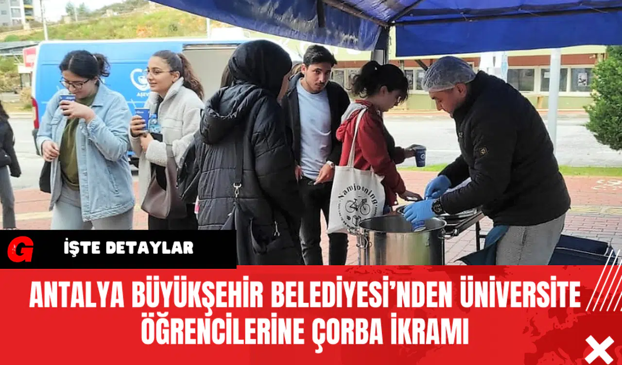 Antalya Büyükşehir Belediyesi, Alanya Alaaddin Keykubat Üniversitesi öğrencilerine çorba ikramında bulunuyor. Bu uygulama, belediyenin Sosyal Hizmetler Dairesi Başkanlığı tarafından geleneksel hale getirilmiş ve bu yıl da devam ediyor.