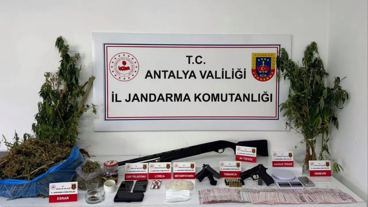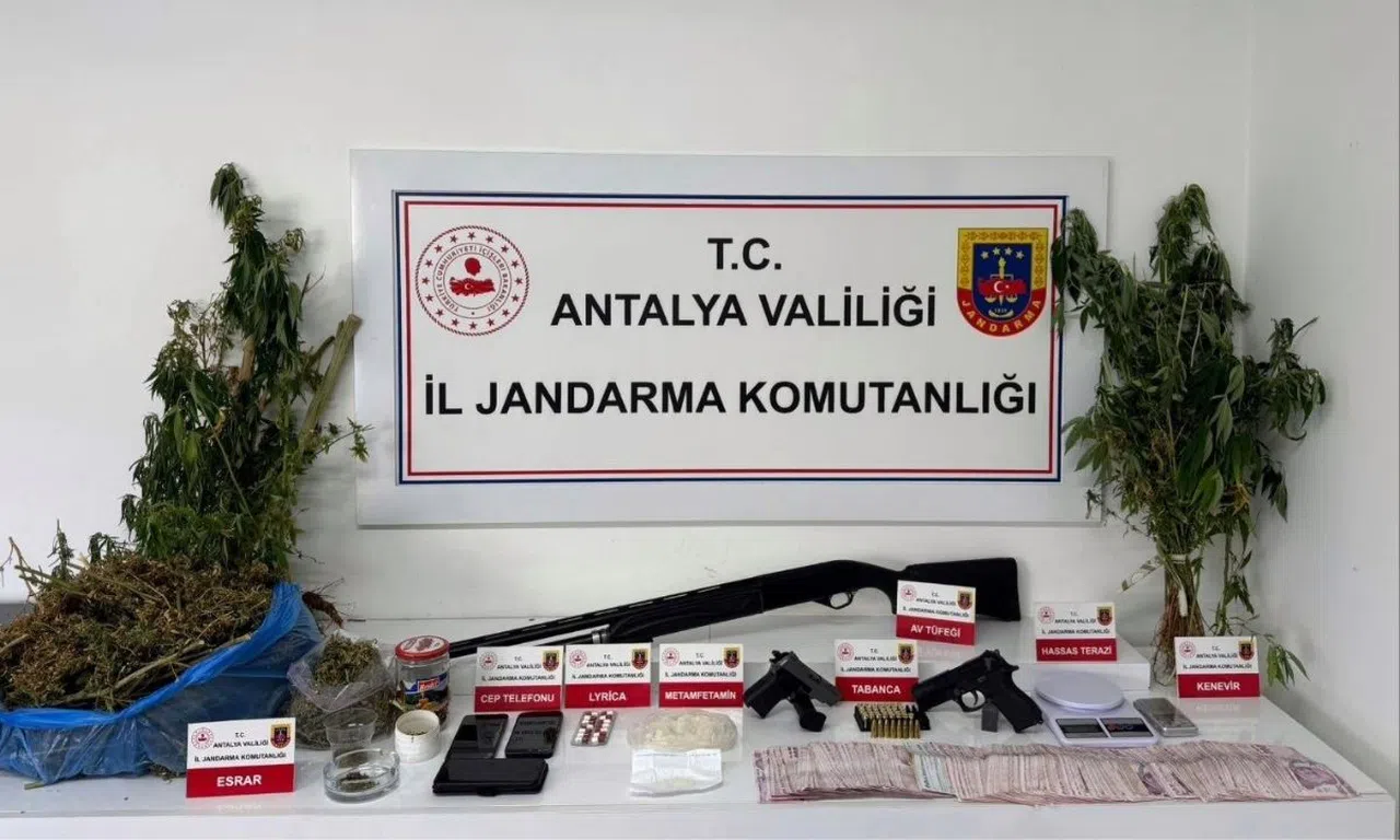 Antalya İl Jandarma Komutanlığı İstihbarat Şube Müdürlüğü, Narkotik Şube Müdürlüğü ile Kepez ve Alanya İlçe Jandarma Komutanlığı ekiplerinin ortak operasyonunda 4 evde arama yapıldı.