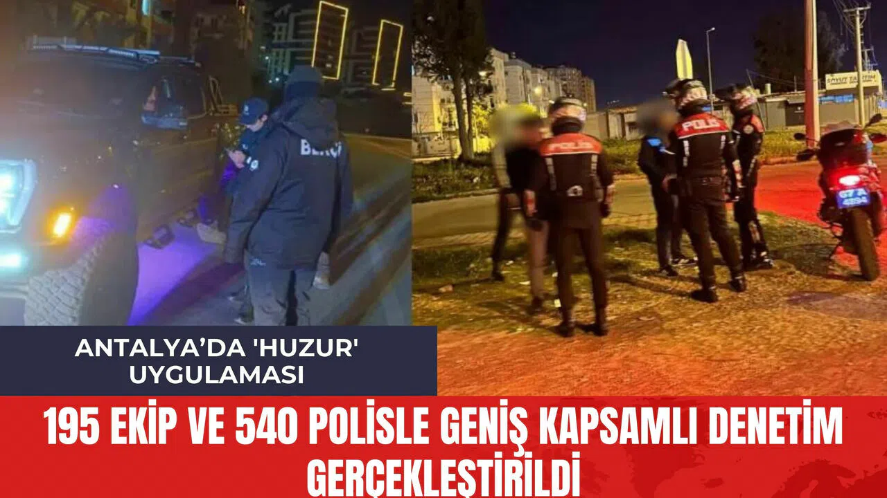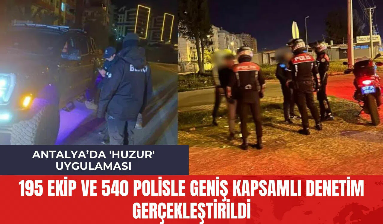 Antalya il genelinde, genel asayişin sağlanması ve suçla mücadele kapsamında gerçekleştirilen 'huzur' uygulamasında, 195 ekip ve 540 polis görev aldı. Uygulama sonucunda 53 aranan şahıs yakalanırken, 34 araç sürücüsüne idari para cezası kesildi.