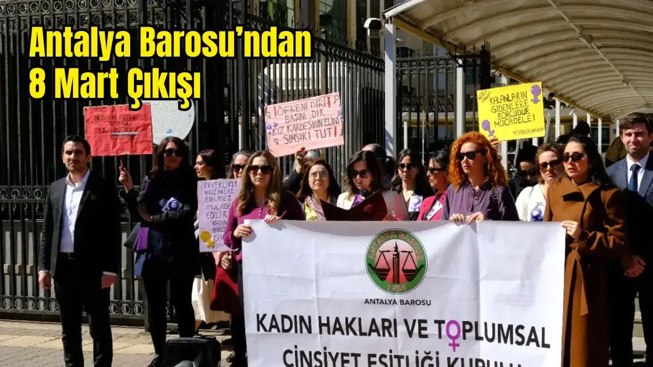 Antalya Barosu Kadın Hakları ve Toplumsal Cinsiyet Eşitliği Kurulu, 8 Mart Dünya Kadınlar Günü dayanışması kapsamında 9 Mart 2026 Pazartesi günü Antalya Adliyesi bahçesinde geniş katılımlı bir basın açıklaması gerçekleştirdi. Baro bünyesindeki avukatların ve hak savunucularının katıldığı etkinlikte, 2025 yılının kadın hakları açısından karanlık tablosu verilerle gözler önüne serildi.