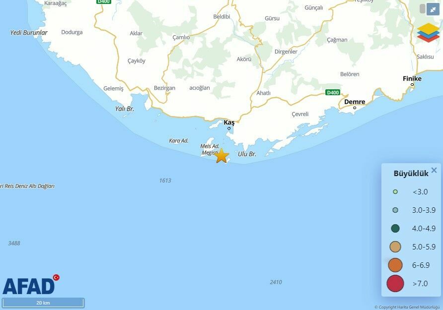 Afet ve Acil Durum Yönetimi Başkanlığı (AFAD) tarafından yapılan açıklamaya göre, Antalya'nın Kaş ilçesinde 3.9 büyüklüğünde bir deprem meydana geldi.