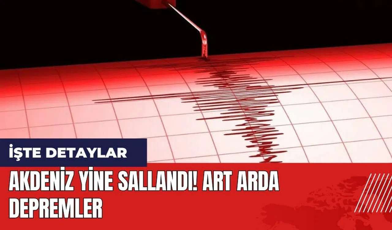 Bugün Akdeniz'de çok sayıda deprem meydana geldi. Kaş açıklarındaki 4.1 ve 4.2 büyüklüğündeki depremin ardından bir sarsıntı da 4.5 ile Bodrum açıklarında olmuştu. Akdeniz'de, saat 18.30'da, 3.7 büyüklüğünde bir deprem meydana geldi.