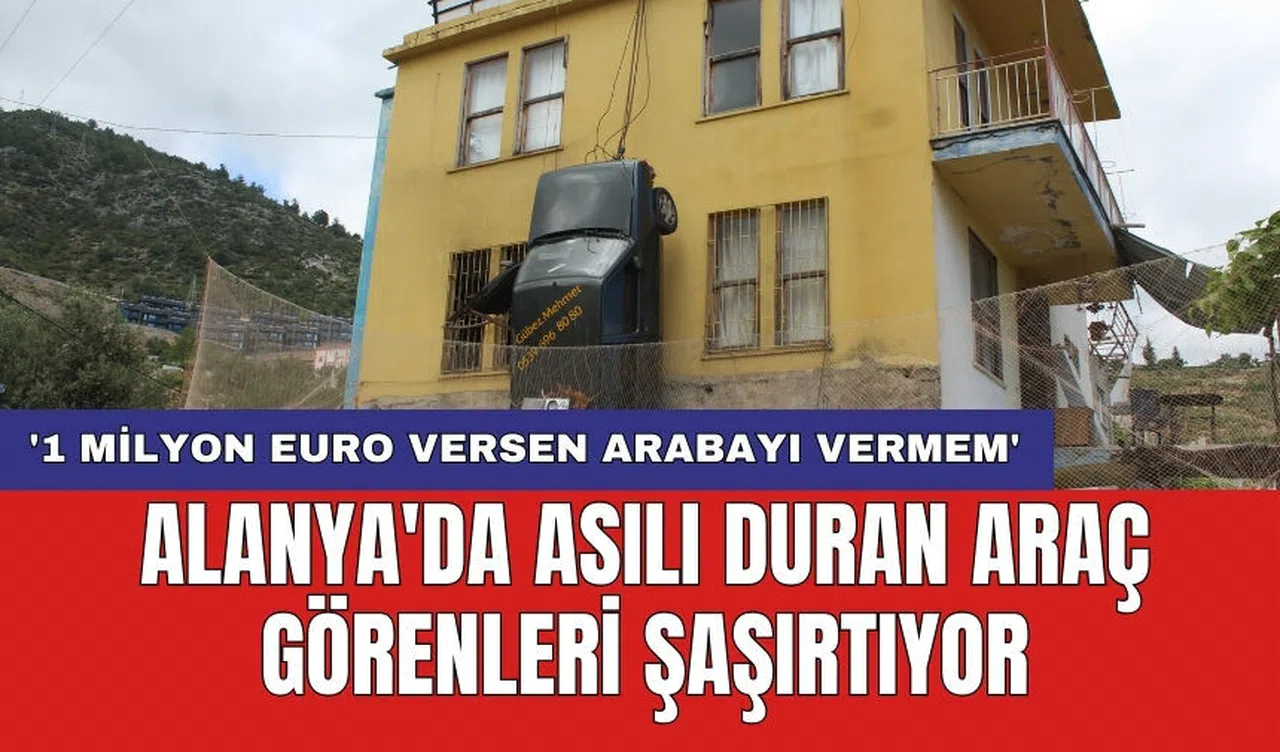 Alanya'nın Sugözü Mahallesi'nde, Mehmet Aydın (47) isimli bir vatandaş, yaklaşık 3 ay önce yaşadığı trafik kazasının ardından aldığı cezayı ilginç bir şekilde ödedi. Kazaya karışan otomobilini ceza olarak evinin duvarına astı. Vinç yardımıyla duvara asılan araç, şimdiye kadar görenleri şaşırtmaya devam ediyor.