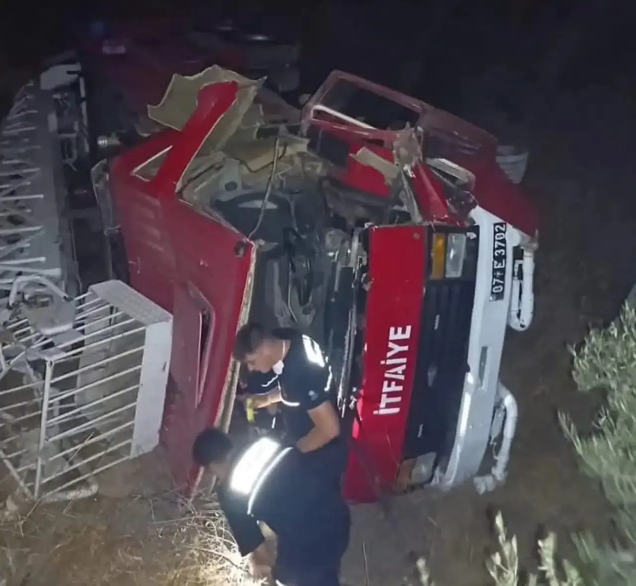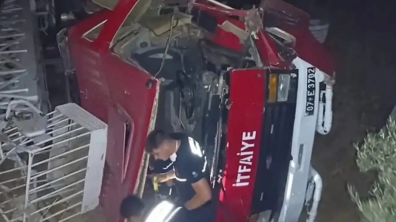 Yangına müdahale sırasında Antalya Büyükşehir Belediyesi’ne ait bir itfaiye aracı devrildi. Kazayla ilgili detaylı bir açıklama yapılmadı.