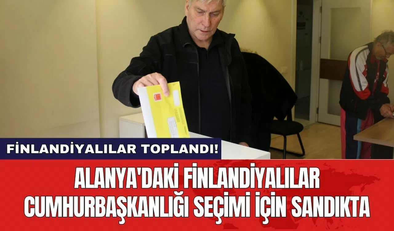 Alanya'da bulunan Finlandiya Fahri Konsolosluk bürosunda kurulan sandık, sabah saat 10.00'dan itibaren oy kullanmaya açıldı. 28 Ocak 2024’te yapılacak Finlandiya Cumhurbaşkanlığı Seçimi ilk turu için 3 gün sürecek oy kullanma işleminde cumhurbaşkanı seçilemezse, 2 hafta sonra seçimin 2. turu için yeniden oy kullanılacak. Alanya’daki Finlandiyalıların oy kullanma işlemlerinin ilk gününde Ankara Büyükelçiliği Başkatibi ve Konsolos Raimo Pahkasalo ile Alanya Finlandiya Fahri Konsolosu Kuddusi Müftüoğlu da hazır bulundu. Eğer ilk turda bir kazanan çıkmazsa, 2. tur seçim 11 Şubat’ta gerçekleşecek.