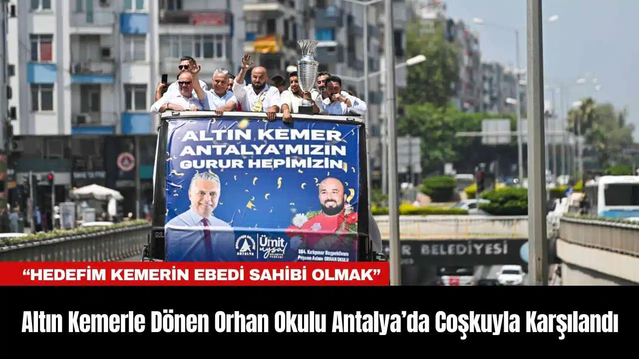Tarihi Kırkpınar Yağlı Güreşleri’nin 664. yılında altın kemeri Antalya’ya kazandıran Orhan Okulu, Döşemealtı TOKİ konutları önünde başlayan bir konvoyla memleketinde coşkulu bir şekilde karşılandı. Bu yıl Muratpaşa Belediyespor adına güreşerek altın kemeri kazanan Okulu’ya kentte büyük ilgi gösterildi. Başpehlivan Orhan Okulu, Muratpaşa Belediye Başkanı Ümit Uysal, Muratpaşa Belediyespor Kulüp Başkanı Özcan Yılmaz, Başantrenör Kemal Yılmaz ve takım arkadaşlarıyla birlikte konvoy eşliğinde şehir turu attı. Antalya sokaklarında ilerleyen konvoy, vatandaşların yoğun ilgisiyle karşılandı. Şehir turu, Muratpaşa Belediyesi önünde sona erdi.