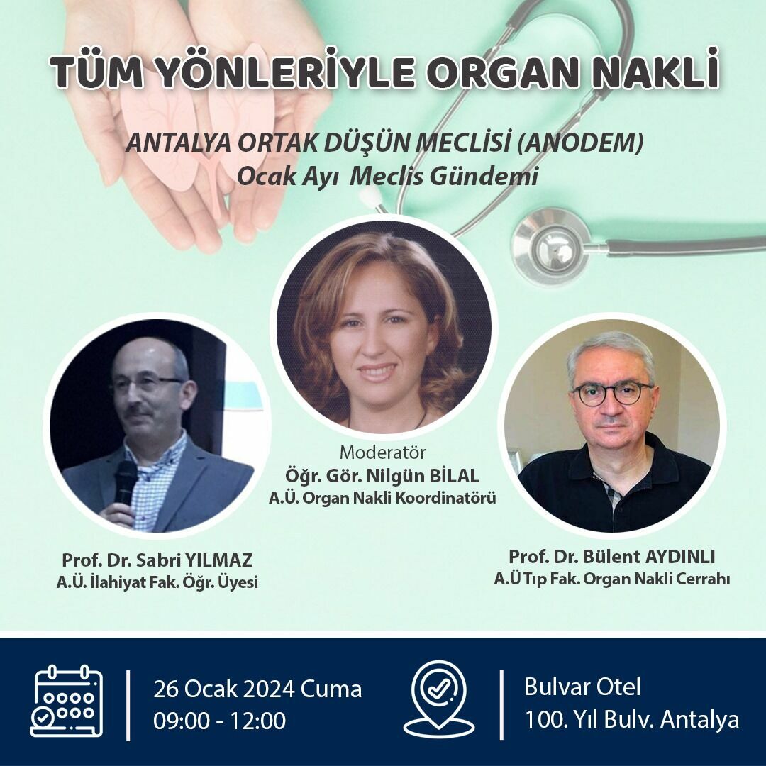 Toplantıda Akdeniz Üniversitesi Organ Nakli Cerrahı Prof. Dr. Bülent AYDINLI, Akdeniz Üniversitesi İlahiyat Fak. Öğrt. Üyesi Prof. Dr. Sabri YILMAZ ve A. Ü. Organ Nakli Koordinatörü Öğrt. Üyesi Nilgün BİLAL ayrı ayrı sunum yapmak suretiyle organ nakli ve bağışı konusunda meclis üyelerini bilgilendirdi. Toplantıda uzun ve etkili bir sunum yapan Prof. Dr. Bülent Aydınlı özetle şöyle konuştu; “Organ nakli fonksiyonlarını yerine getiremeyen organların bir yenisi ile değiştirilmesidir. Organ nakli kaynakları canlı verici ya da beyin ölümü olan insanlardan elde edilen organlardır. Ülkemizde daha fazla canlı vericilerden organ nakilleri yapılmakta iken batı toplumlarında bu, beyin ölümü olan kişilerden elde edilen organlar ile daha fazla yapılmaktadır. Tüm diyaliz hastaları böbrek nakli alıcı adayıdırlar. Karaciğerde ise hepatit B, C ve alkol, karaciğer yetmezliğinin en büyük sebeplerindendir ve sonuçta siroz ve karaciğer tümörlerine sebep olabilmektedir. Bu yüzden bu hastalar karaciğer nakline ihtiyaç duyabilmektedir. Asıl önemli olan toplumda organ bağışı bilincini yerleştirebilmemizdir. Böylece canlı vericileri olmayan ve bekleme listelerinde hayatlarını kaybeden birçok canımıza da yaşayacakları topluma katkı sunabilecekleri bir hayat verebiliriz”.