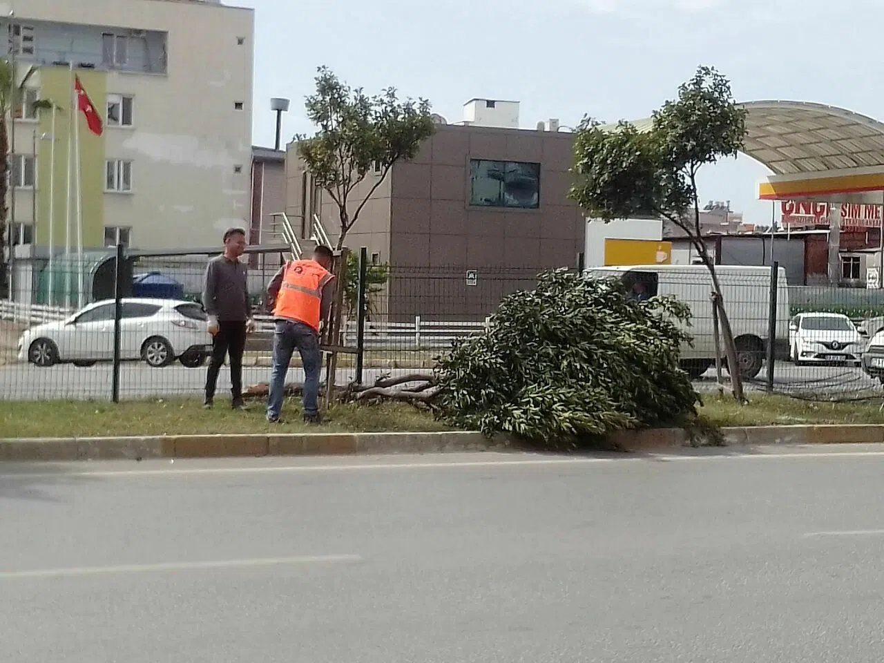Kent merkezinde birçok farklı noktada fırtına nedeniyle ağaçlar yerinden sökülürken, birçok ağacın da dalları kırıldı. Ana yollarda orta refüjlerde devrilen ağaçlara müdahale eden ekipler, kırılan ağaç dallarını keserek araç ve yaya trafiğinde yaşanabilecek olumsuzlukların önüne geçti.