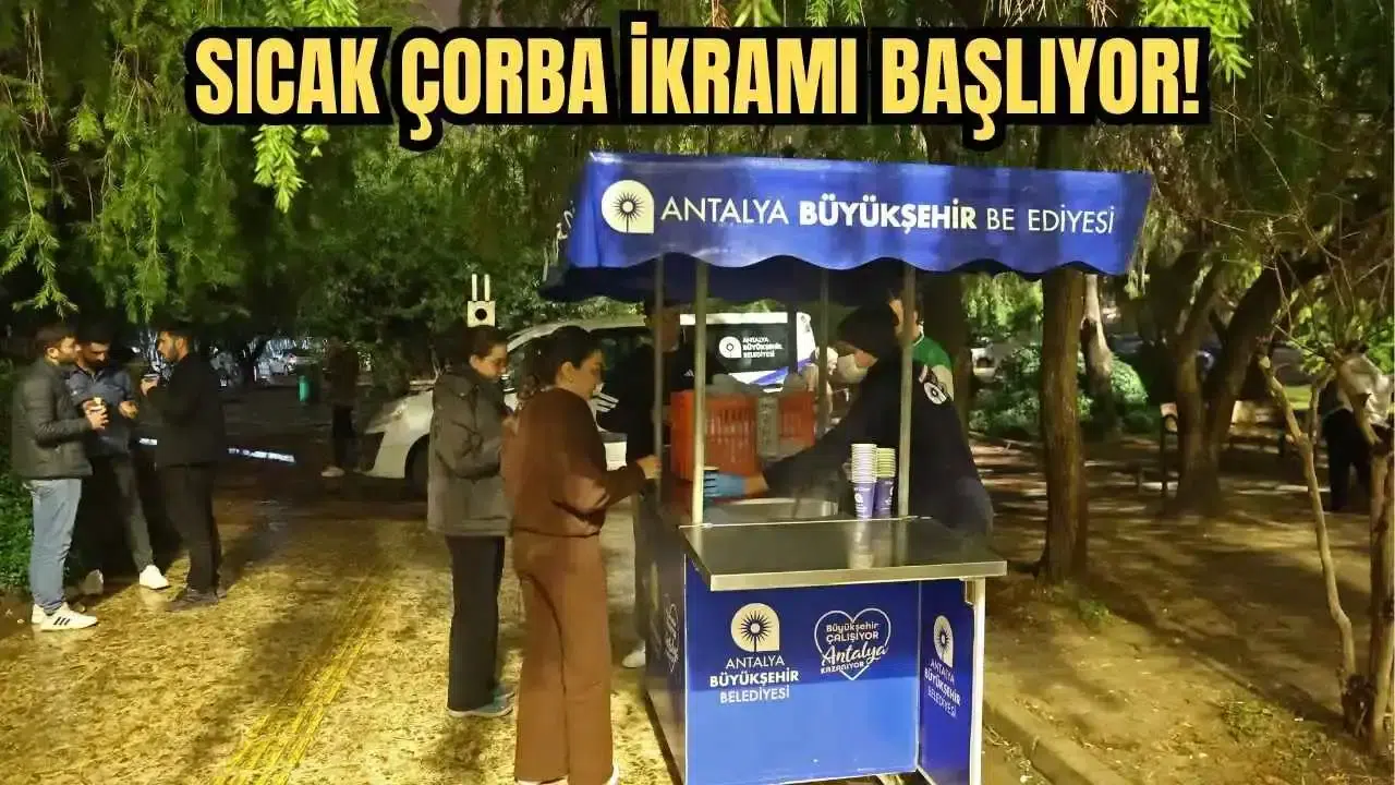 Antalya Büyükşehir Belediyesi, Bahar dönemi vize sınavlarının başlamasıyla birlikte öğrencilere moral ve enerji depolamak amacıyla anlamlı bir adım attı. Yoğun ders çalışma temposu içerisinde olan öğrencilere yönelik başlatılan "Çorba İkramı" projesi, sınav haftası boyunca devam edecek.