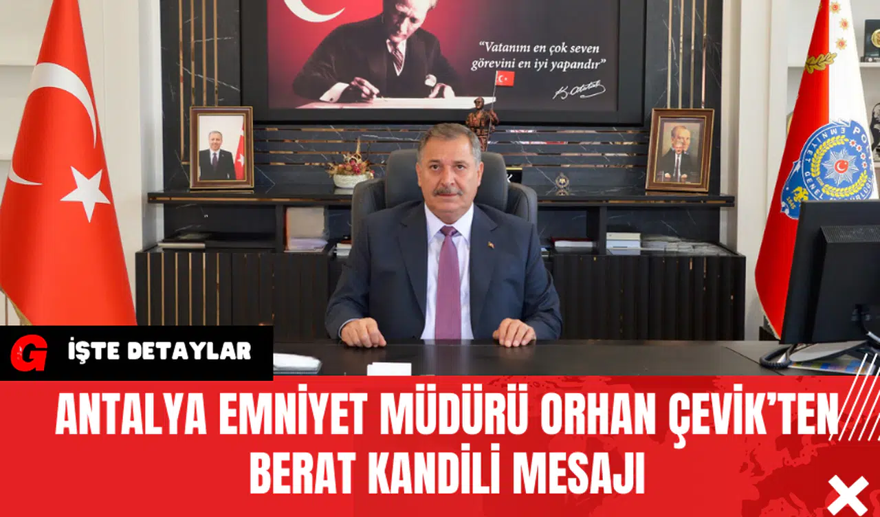 Antalya Emniyet Müdürü Orhan ÇEVİK, Berat Kandili dolayısıyla bir mesaj yayınladı. ÇEVİK, “Berat Gecesi, Ramazan ayının habercisi ve Yüce Mevla’nın rahmet, lütuf ve mağfiretinin tecelli ettiği, kullarına merhamet kapılarını sonuna kadar açtığı, manevi feyziyle kalplerimizi aydınlatan ender gecelerden biridir.” ifadelerini kullandı.