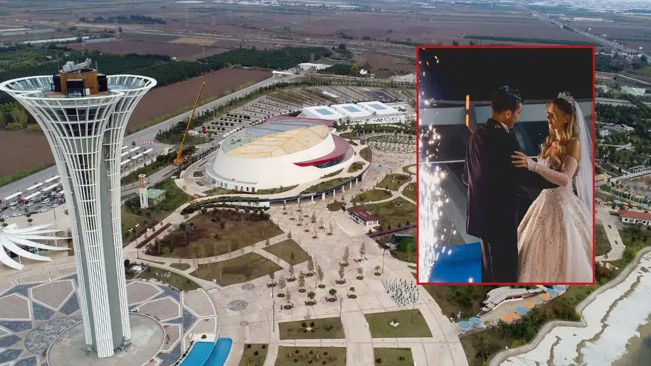 Antalya'da EXPO 2016 için inşa edilen EXPO Kulesi ilk kez bir düğüne sahne oldu. 114 metre yüksekliğindeki EXPO simgesinde Sinem Seren ile Veli Çakır hayatlarını birleştirdi.