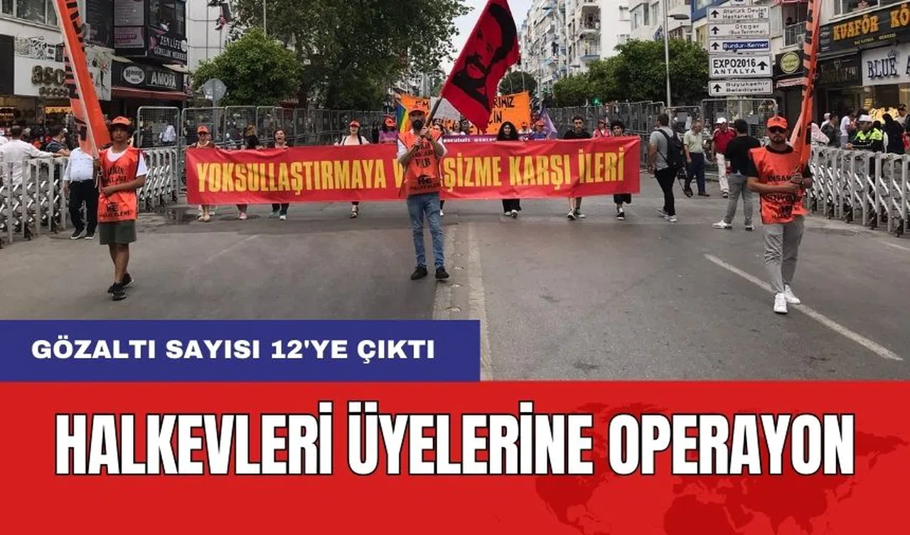 Antalya’da 1 Mayıs İşçi Bayramı’nda Dev Genç marşı okudukları için 7 Antalya Halkevleri üyesi sabah saatlerinde gözaltına alındı. Gözaltına alınan 7 kişinin Selçuk Coşkun, Ayten Ceyhan, Naciye Ulay, Burcu Gürbüz, Gülcan Şahin, Gülkan Gülseven ve Özlem Afacan olduğu açıklanmıştı. İlk gelen bilginin ardından 5 üyenin daha gözaltına alındığı öğrenildi. Sonradan gözaltına alınan isimlerden ise Serpil Evcin ismi bilinirken, diğer 4 kişinin ise öğrenci olduğu ileri sürülüyor. 1 Mayıs kortejinde Dev Genç marşı okudukları ve ‘Mahir, Hüseyin, Ulaş kurtuluşa kadar savaş’ sloganı attıkları gerekçesiyle terör propagandası yaptıkları kaydedildi. 31 Ekim 2024 günü gözaltına alınan SOL Parti üyeleri de 1 Mayıs’ta atılan sloganlar sebebiyle gözaltına alınmıştı.