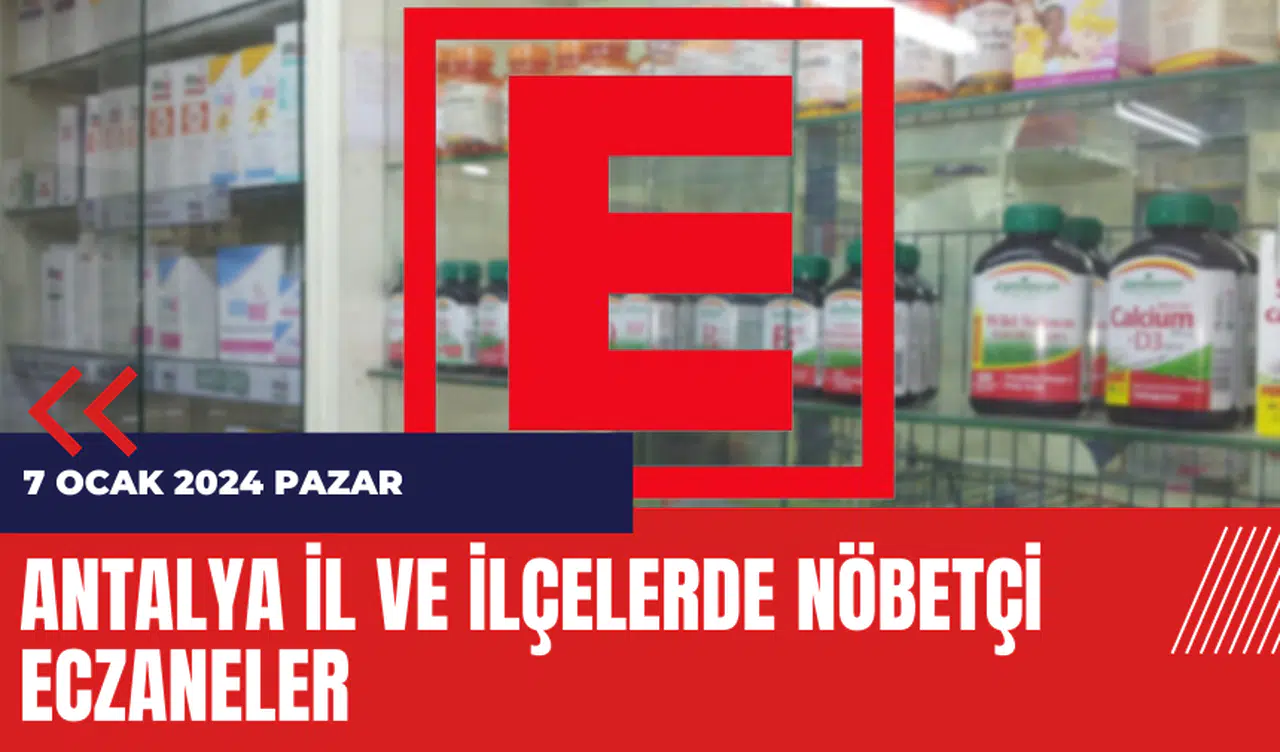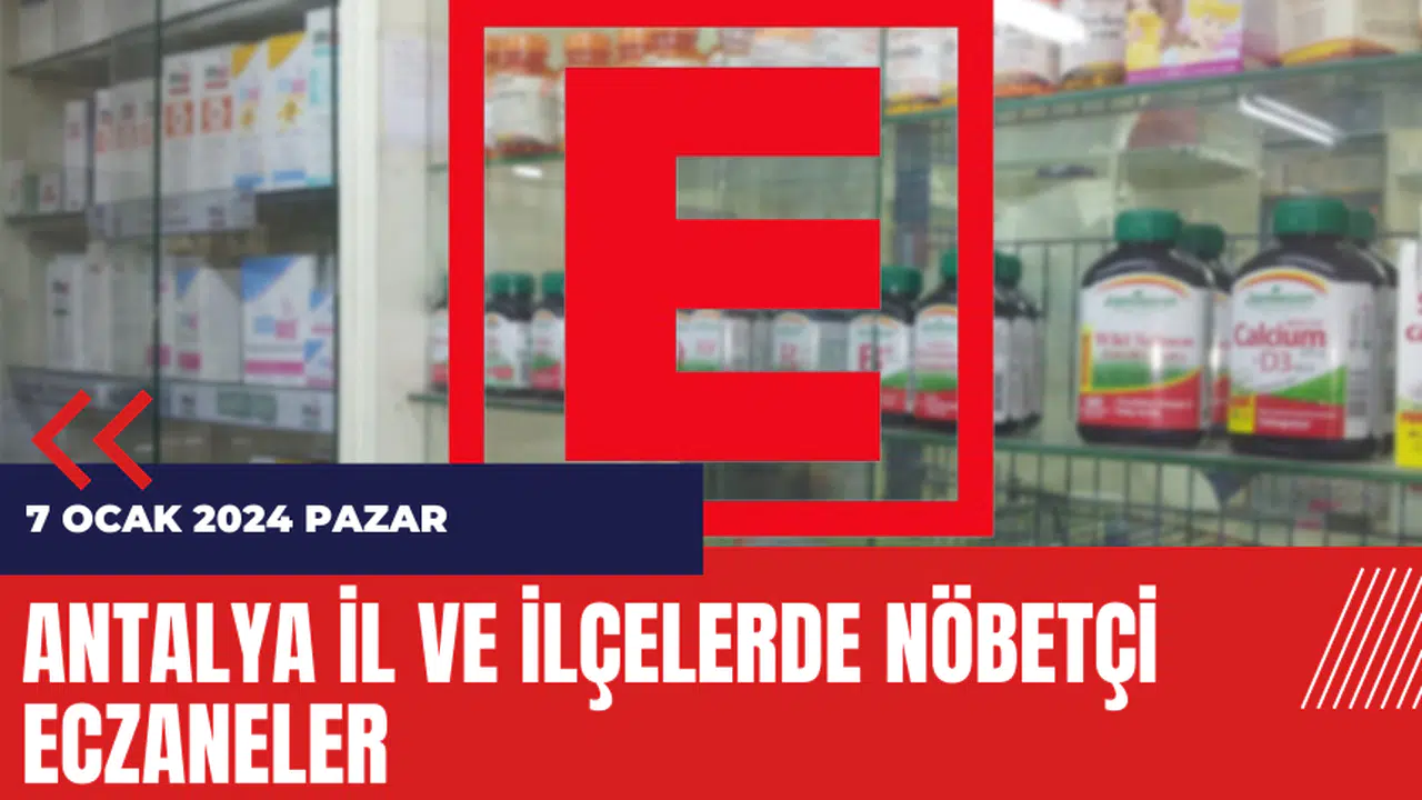Antalya Eczacı Odası, 7 Ocak 2024 Pazar günü Antalya ve çevresindeki nöbetçi eczaneler ve iletişim bilgilerini yayınladı.