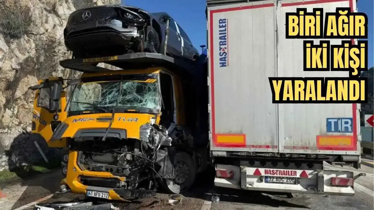 Antalya-Isparta Karayolunda saat 10.45 sıralarında meydana gelen kazada, M.Ö. (46) idaresindeki 32 AFL 499 plakalı tır ile K.V. (41) yönetimindeki 41 AFU 212 plakalı otomobil yüklü tır kafa kafaya çarpıştı. Kazada her iki tır sürücüsü de yaralandı. Çevredeki vatandaşların 112 Acil Çağrı Merkezi'ne ihbarı üzerine bölgeye itfaiye, sağlık ve jandarma ekibi sevk edildi. Yaralı sürücüler sağlık ekipleri tarafından yapılan ilk müdahalenin ardından ambulanslarla Bucak Devlet Hastanesine kaldırıldı.