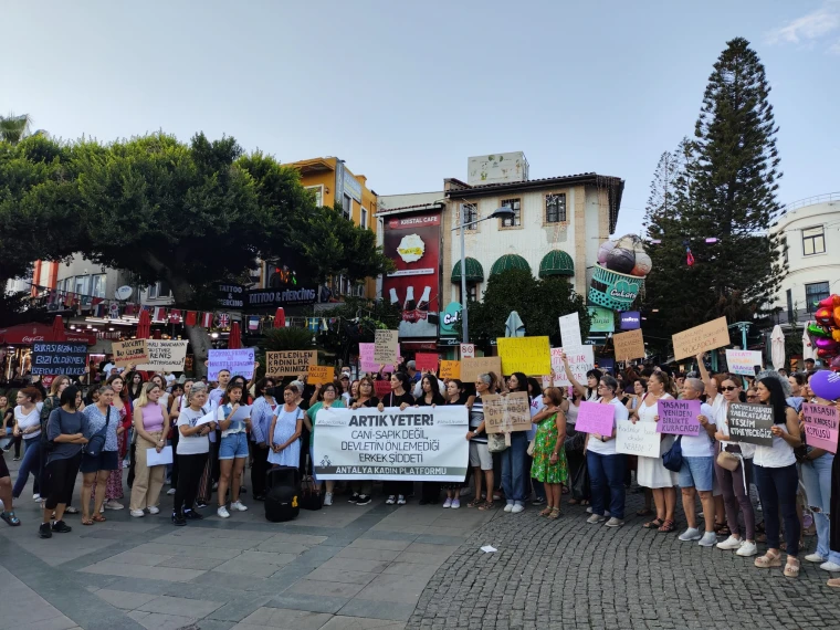 Geçtiğimiz günlerde İstanbul’da 19 yaşındaki cani Semih Çelik tarafından Ayşenur Halil ve İkbal Uzuner katledilmişti. Günlerdir Türkiye gündeminde olan konuyla ilgili Attalos Meydanı’nda açıklama yapan Antalya Kadın Platformu, hükümetin şiddet ve cinayet konularına karşı önlem alması gerektiğini ifade etti. Antalya Kadın Platformu adına açıklama yapan Kadriye Tuğcu, “Bu topraklarda her gün ölüyor, tacize ya da tecavüze uğruyoruz. Katledilen, şiddete uğrayan her kadının sorumlusu iktidara geldiği günden beri kadın düşmanı politikaları ile hayatımızı kuşatmaya çalışan AKP’dir. Failleri cezasızlık politikaları ile ödüllendirip cesaretlendiren ‘erkek adaletin’ ellerinde kadınların kanı var. Her yer suç mahalli” dedi.