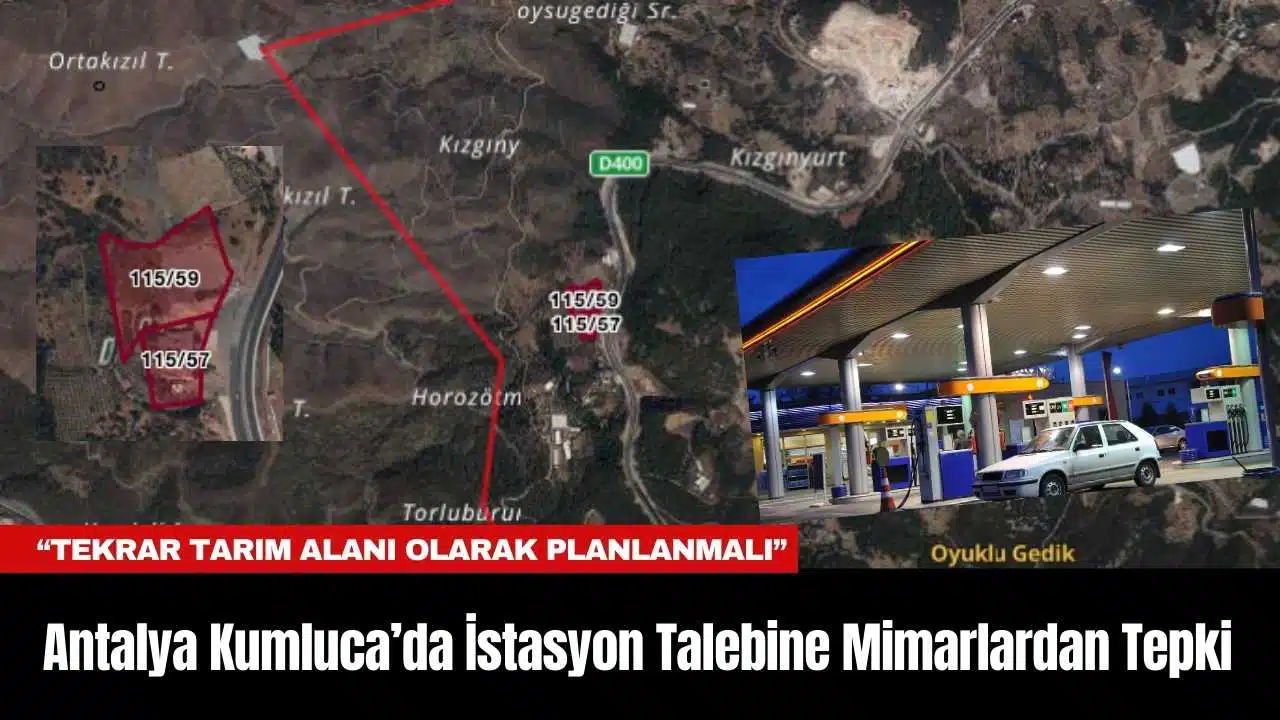 Mimarlar Odası Antalya Şubesi’nce yapılan açıklamada, “Oluşumu milyonlarca yılda gerçekleşen ve dedelerimizin mirası değil torunlarımızın emaneti olan tarım toprakları, rant uğruna bu kadar kolay kaybedilmemelidir. Antalya İli Kumluca İlçesi Belen Mahallesi 115 ada 57 ve 59 parsellere ilişkin tarım alanından rant amaçlı Akaryakıt ve Servis İstasyonu yapılabilmesi amacıyla 1/5000 ölçekli Nazım İmar Planı değişikliği imar mevzuatı ve kamu yararına aykırıdır. Plan raporu eki Antalya İl Tarım Orman Müdürlüğü yazılarında, tarla vasfındaki 2.2202 hektar yüzölçümlü tarım alanı üzerinde “Akaryakıt, LPG ve Elektrikli Şarj İstasyonu ile Bunlara Bütünleşik Konaklama Tesisi, Teşhire ve Ticarete Yönelik Mağazalar gibi Karayoluna Hizmet Verecek Tesisler ve Bunlardan Ayrı Olarak Araç Bakım, Onarım, Teşhir ve Satış Amaçlı Tesislerin Yer Alacağı Akaryakıt ve Servis İstasyonu” amaçlı imar planı yapılmasına ilişkin görüşlerinde, uydu görüntülerinden de açıkça görüleceği gibi her iki parsel içerisinde 300 den fazla ağaç ve bir sulama havuzu bulunan tarım alanı vasfındaki parselleri Kuru Marjinal Tarım Arazisi olarak değerlendirmiş ve rant amaçlı Akaryakıt, LPG ve Elektrikli Şarj İstasyonu ile Bunlara Bütünleşik Konaklama Tesisi, Teşhire ve Ticarete Yönelik Mağazalar gibi Karayoluna Hizmet Verecek Tesisler ve Bunlardan Ayrı Olarak Araç Bakım, Onarım, Teşhir ve Satış Amaçlı Tesislerin Yer Alacağı Akaryakıt ve Servis İstasyonu olarak planlanmasını uygun bulmuştur” denildi.