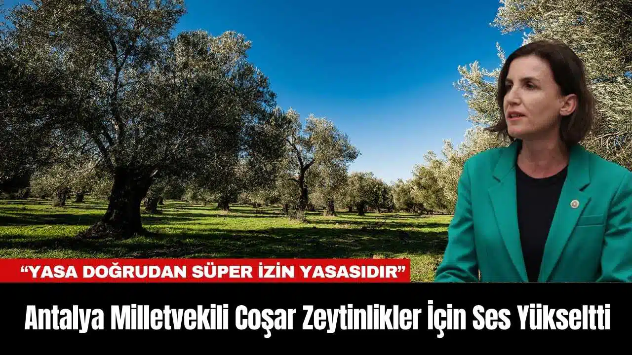 Her hafta Antalya’nın ilçelerinde eylemlerde olduklarını ifade eden Antalya Milletvekili Coşar, “Her hafta Antalya'nın farklı ilçesinde çevre eylemindeyiz. Toroslardaki ormanlar, meralar, dereler GES ve HES'lere, maden ve taş ocaklarına feda ediliyor; su kaynaklarımızın yanı başına ve meralara GES projeleri yapılmak isteniyor. Mesele enerji üretimi değil, mesele rant üretimidir. Bu sadece bir yasa teklifi değil, bu teklif bir tercihtir; ya doğayı, halkı, üretimi, yaşamı tercih edeceğiz ya da birkaç şirketin çıkaranı. Bu tercih, tarihî bir tercihtir. Şimdi ise bu sesi burada, bu Mecliste de duyun. Bu yasa vicdanlarda telafisi imkânsız yaralar açacaktır. Çünkü mesele sadece zeytin değil, mesele havamız, suyumuz, toprağımız, ormanımız ve geleceğimizdir ve biz o geleceği birkaç yandaş şirketin hırsına kurban etmeyeceğiz. Biz Cumhuriyet Halk Partisi olarak bu teklifin karşısındayız, halkın, doğanın, toprağın, suyun yanındayız. Bu yasa teklifi geri çekilmelidir, aksi hâlde bu talanın hesabı bugün sorulmazsa yarın tarih önünde sorulacaktır. Doğayı, yaşamı, Anayasa'yı yok sayan bu anlayışa artık "Dur!" denmelidir.” ifadelerini kullandı.