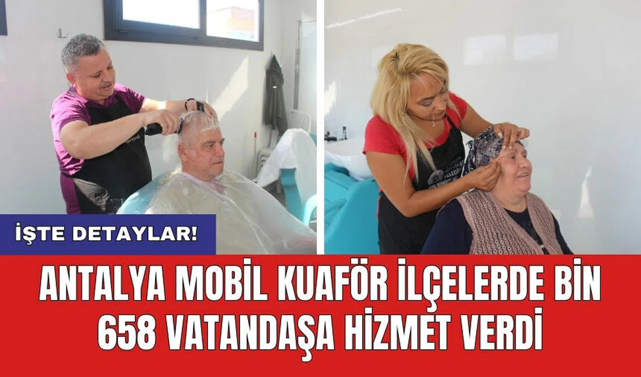 Serik ilçesinde 7 mahallede, toplamda 85 vatandaşa kişisel bakım hizmeti sunuldu. Mobil Kuaför Tırı, Manavgat'ın Yaylaalan, Dolbazlar, Sülek ve Aksaz mahallelerinde 2 gün boyunca 172 vatandaşa hizmet götürdü. Alanya'da ise Gümüşgöze, Yenice, Burçaklar, Güney, Orhan, Karamanlar, Saburlar ve Çakallar mahallelerinde 85 vatandaşa ve Güzelbağ ve Dimçayı İlköğretim Okullarında 259 öğrenciye toplamda 344 kişiye hizmet verdi.