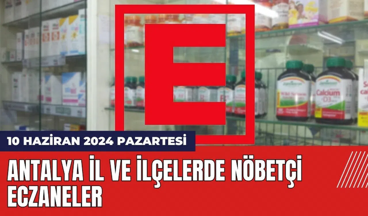 Antalya'da 10 Haziran 2024 Pazartesi günü nöbetçi eczanelerin hangileri olduğu merak ediliyor. Antalya ilçelerinde nöbetçi eczane nerede? Detaylar haberimizde...