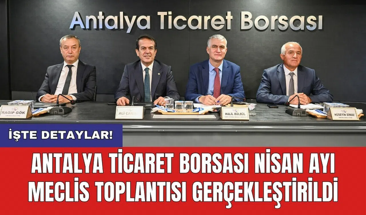 Antalya Ticaret Borsası'nın Nisan ayı Meclis Toplantısı, başkanlığını Erdoğan Ekinci'nin yaptığı bir toplantıyla gerçekleştirildi. Toplantıda, bir aylık döneme ilişkin ATB'nin çalışmaları üyelere sunuldu. Meclis Başkanı Erdoğan Ekinci'nin yönetiminde yapılan toplantıda, ATB Yönetim Kurulu Başkanı Ali Çandır, tarım, ekonomi, Antalya ve gündeme ilişkin değerlendirmelerde bulundu.