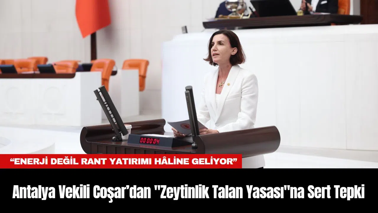 Cumhuriyet Halk Partisi (CHP) Antalya Milletvekili Aliye Coşar, TBMM'deki komisyon görüşmelerinde, kamuoyunda büyük tepki çeken ve zeytinlik ile madenlere çevresel etki değerlendirme (ÇED) raporu verilmesinin önünü açan kanun teklifini sert bir şekilde eleştirdi.