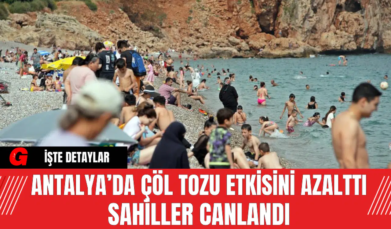 Kuzey Afrika’dan gelen çöl tozu etkisindeki Antalya’da, iki gün süren taşınım etkisinin azalmasıyla birlikte sahiller canlandı. Vatandaşlar ve tatilciler, güzel havanın tadını çıkararak bol bol denize girdi.