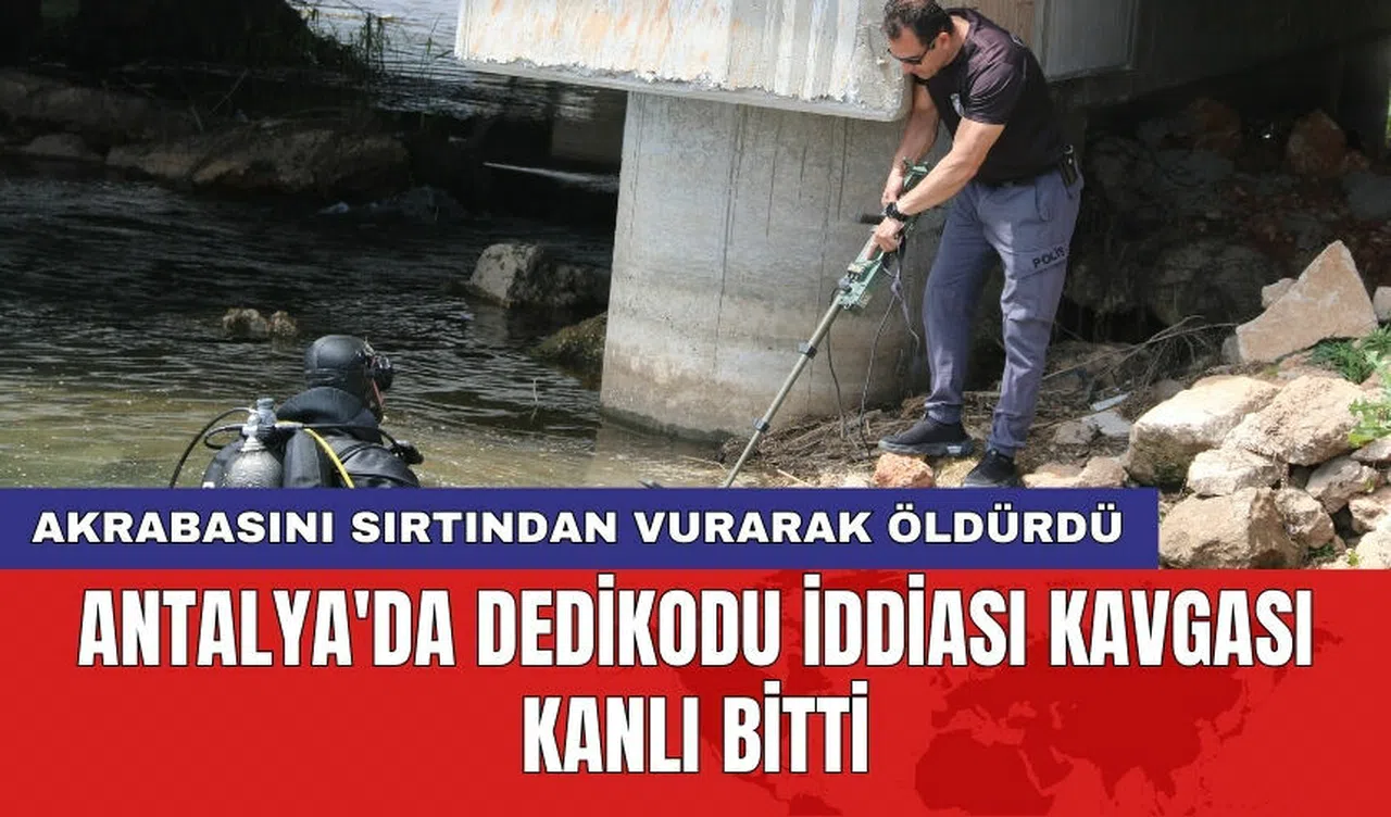 Antalya'nın Kepez ilçesinde, İ.S adlı şahıs, eski eşi hakkında dedikodu yaptığını iddia ettiği akrabası Cihan Akın Güler'i parkta tabanca ile 5 el ateş ederek öldürdü. Cinayet sonrası ormanlık alanda yakalanan şüpheli, kullandığı tabancayı çaya attığını belirtti. Ancak polis ekiplerinin çayda yaptığı aramada sonuç alınamadı.
