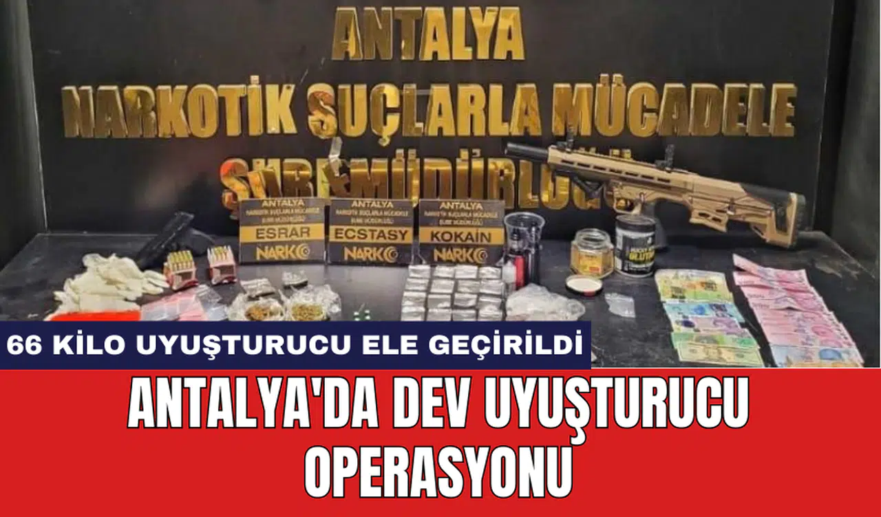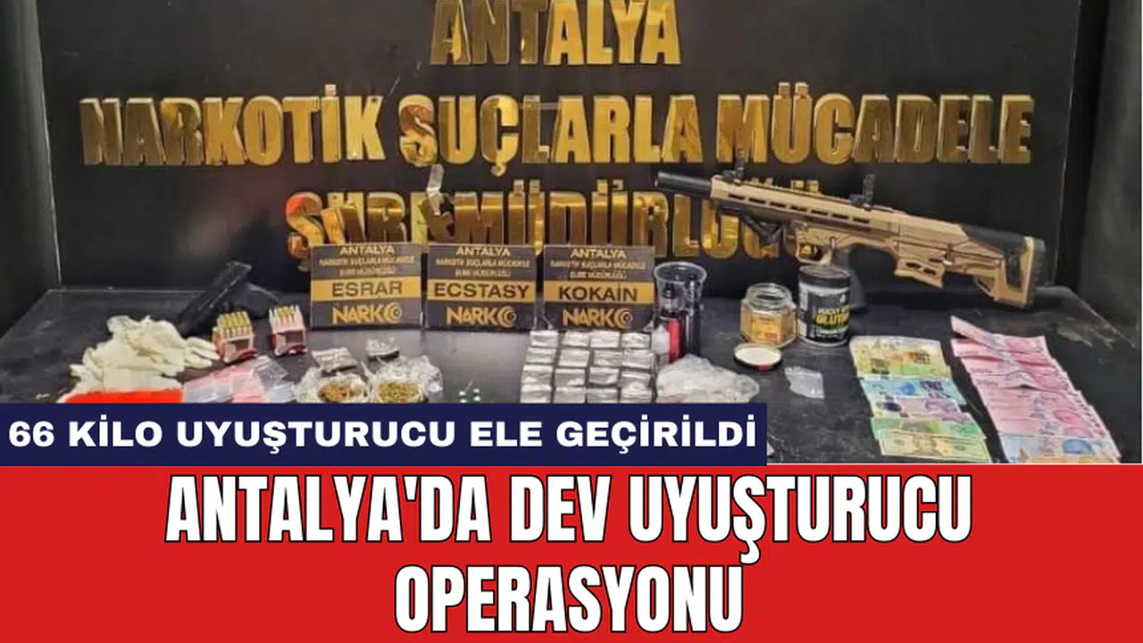 Antalya'da gerçekleştirilen kapsamlı bir uy*şturucu operasyonunda toplam 66 kilo uy*şturucu madde ele geçirildi. Antalya Cumhuriyet Başsavcılığı koordinesinde yürütülen çalışmalar kapsamında, Muratpaşa, Kepez, Konyaaltı, Aksu ve Manavgat ilçelerinde belirlenen 32 adrese eş zamanlı operasyonlar düzenlendi.