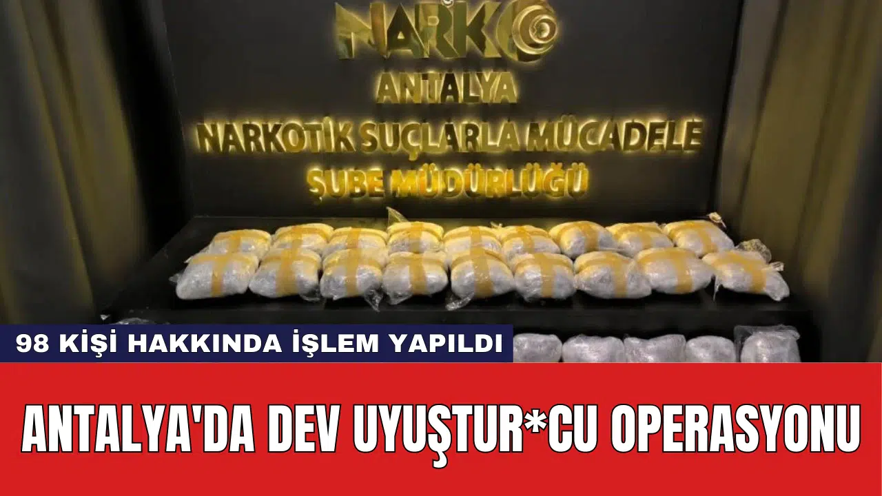 Antalya Emniyet İl Müdürlüğü ekipleri, uyuşt*rucu madde ticaretine yönelik kapsamlı bir operasyon düzenledi. Muratpaşa, Kepez ve Serik ilçelerinde gerçekleştirilen eş zamanlı baskınlarda çok sayıda uyuşturucu madde ele geçirildi ve 98 kişi hakkında adli işlem başlatıldı.
