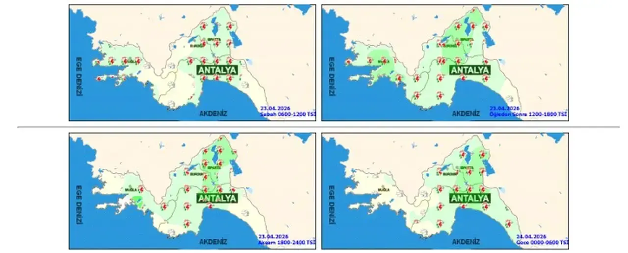 Meteoroloji uzmanları, özellikle sahil şeridi ve merkeze yakın noktalar için "kuvvetli" notunu düştü. Rapora göre; Aksu, Döşemealtı, İbradi, Manavgat ve Serik ilçelerinde akşam saatlerinden sonra yağışların şiddetini artırarak zaman zaman çok kuvvetli bir hal alacağı tahmin ediliyor.